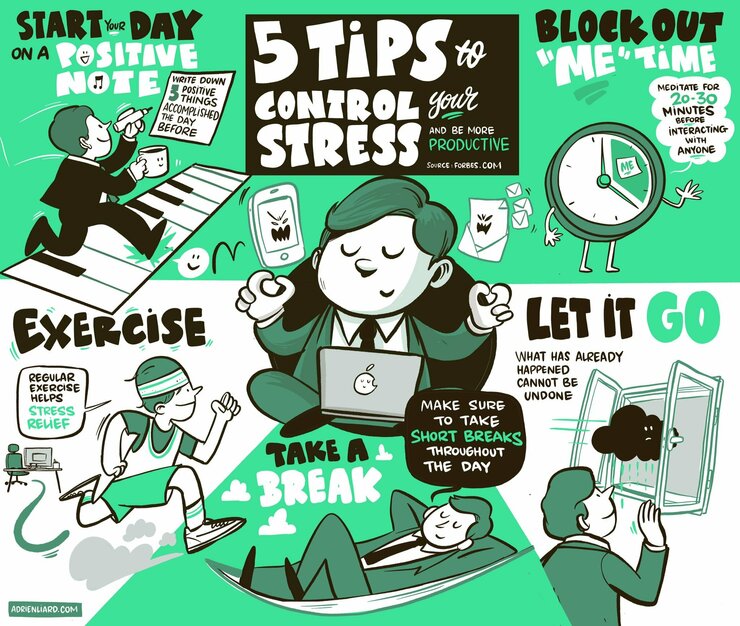 Adrien Liard on Twitter: "How to control your stress and be more productive ? I captured those 5 tips from @Forbes into this #sketchnote… "