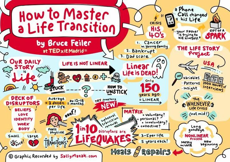 Here is my illustrated summary of a great speech by writer Bruce Feiler, 'The secret to mastering life's biggest transitions'. It offers a powerful way... 32 comments on LinkedIn